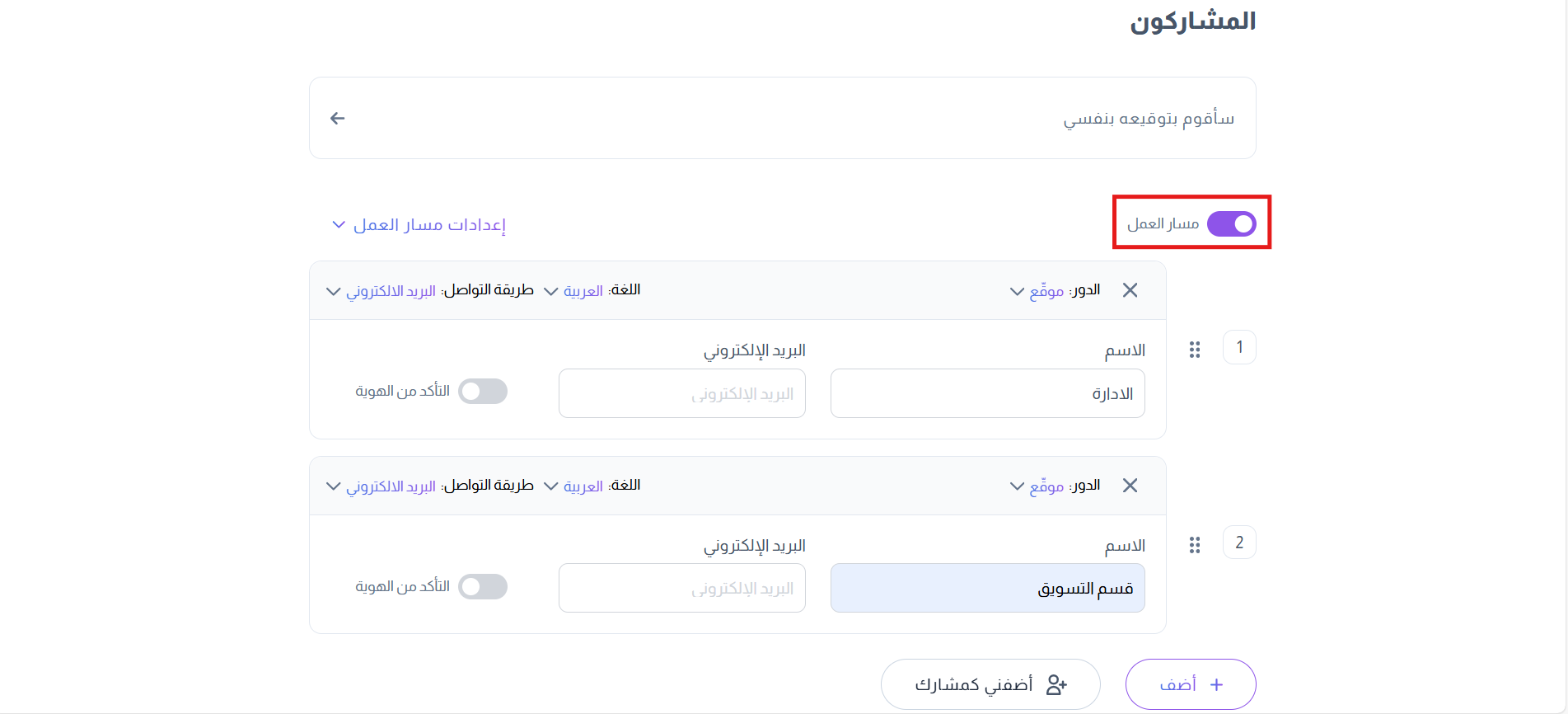 - أضف جميع المشاركين المطلوبين في خطوة إضافة المشاركين أثناء عملية تحضير المستند.