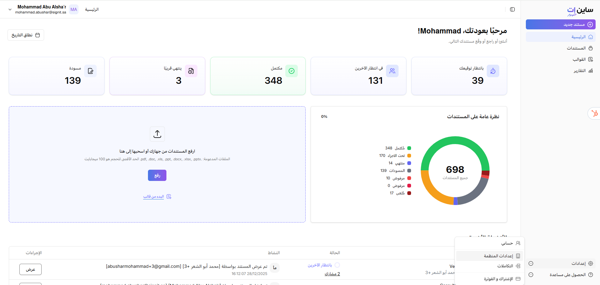 عند نجاح تكامل Active Directory، سيقوم ساين إت تلقائيًا بجلب بيانات المستخدمين مثل الأسماء وعناوين البريد الإلكتروني من الدليل. وعند إرسال أي مستند، ستحصل على اقتراحات فورية للمشاركين، مما يضمن توفر جميع الموظفين لاختيار المستلمين بسرعة ودقة.