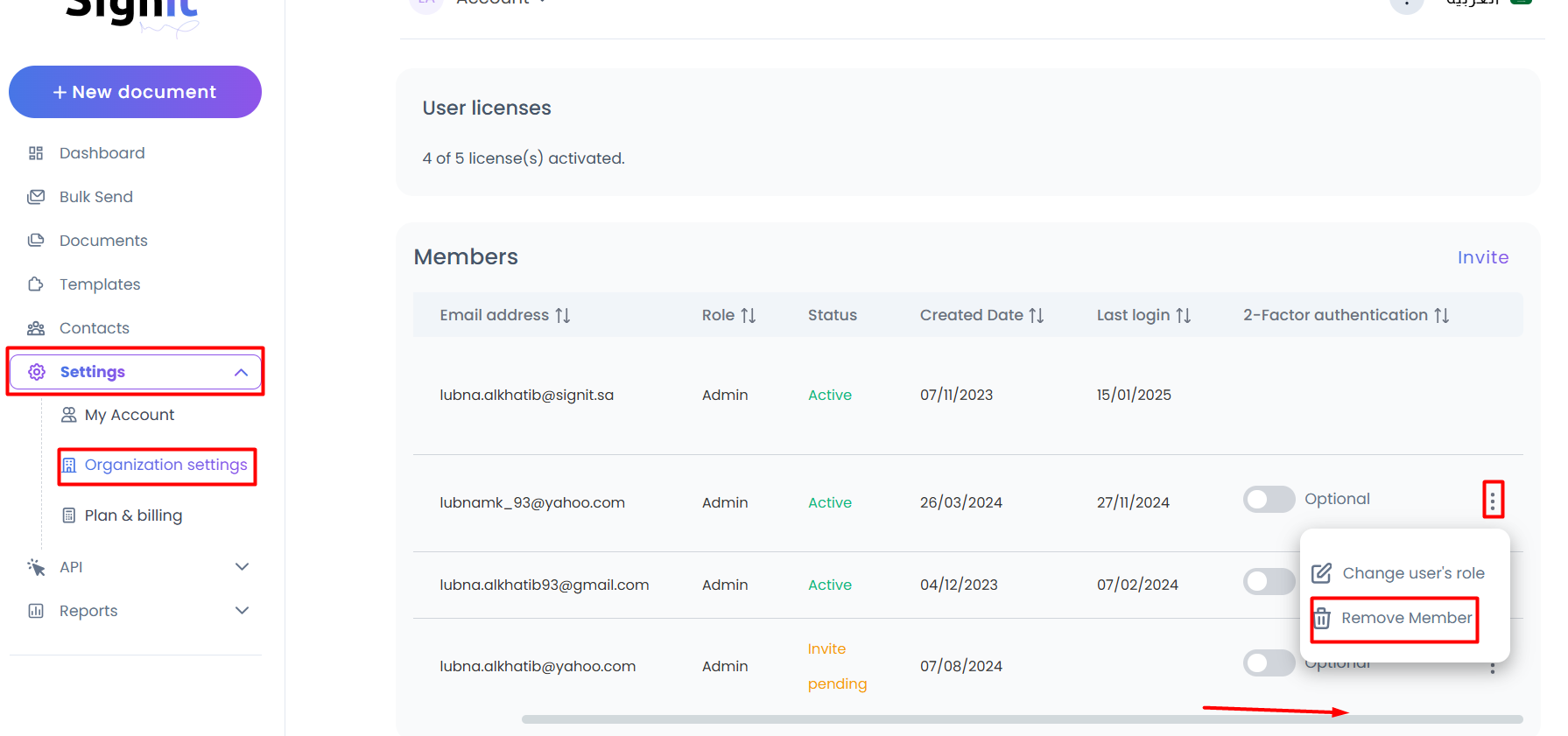 - Navigate to Organization setting then go User .